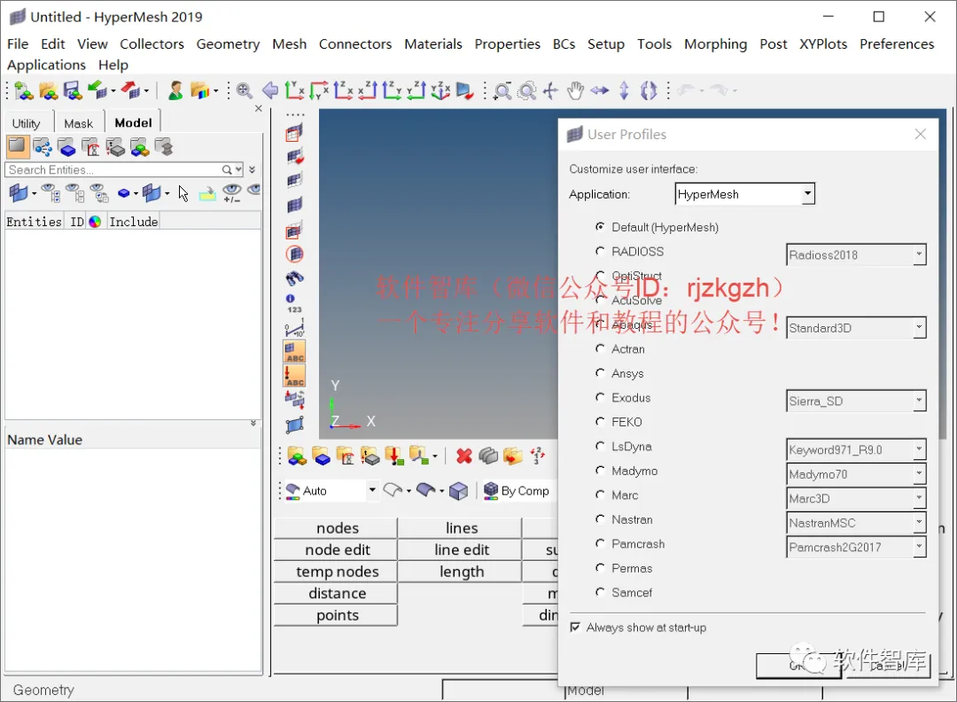 19.打开HyperMesh2019软件,英文界面如下: