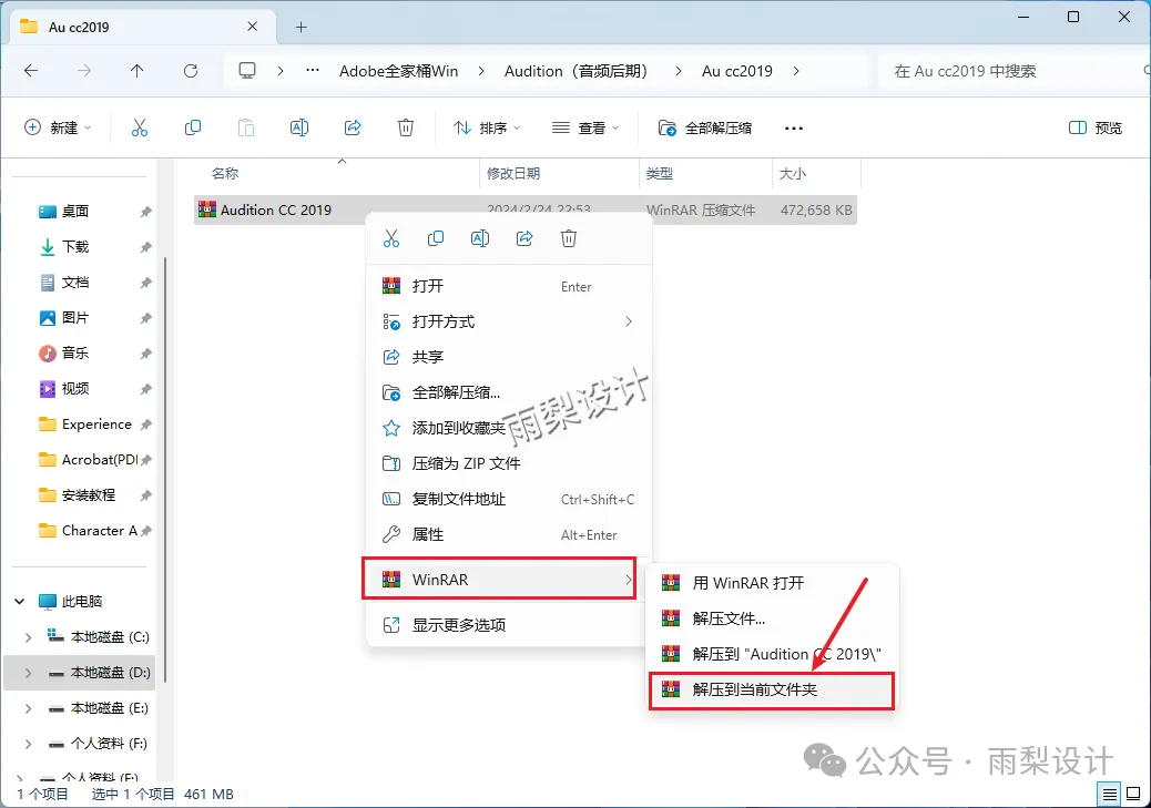 1.右键【下载的安装包】选择【解压当前文件夹】