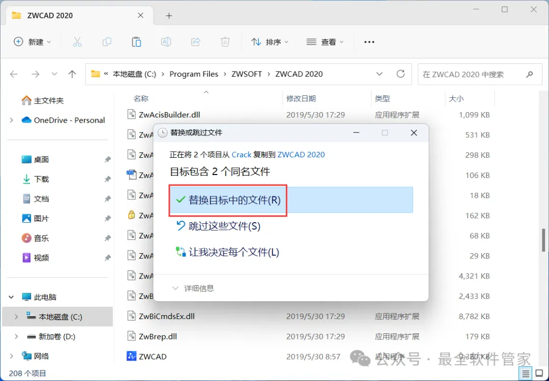 12、点击【替换目标中的文件】