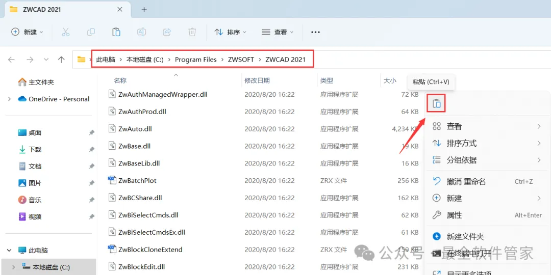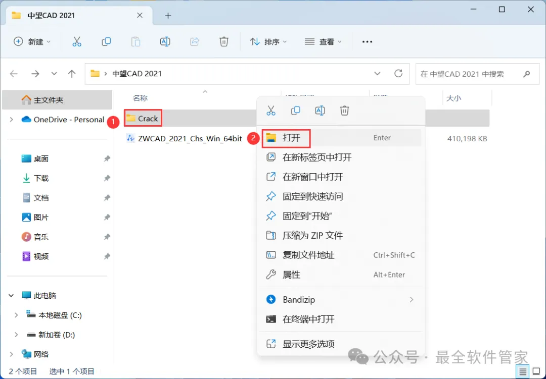 8、回到中望CAD 2021文件夹,找到【Crack】文件夹,右键【打开】它