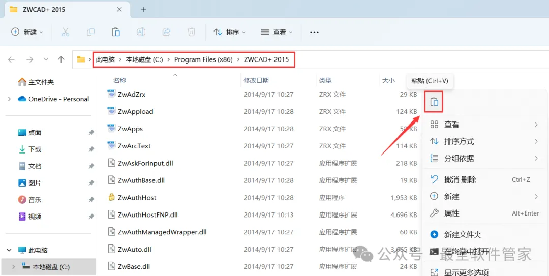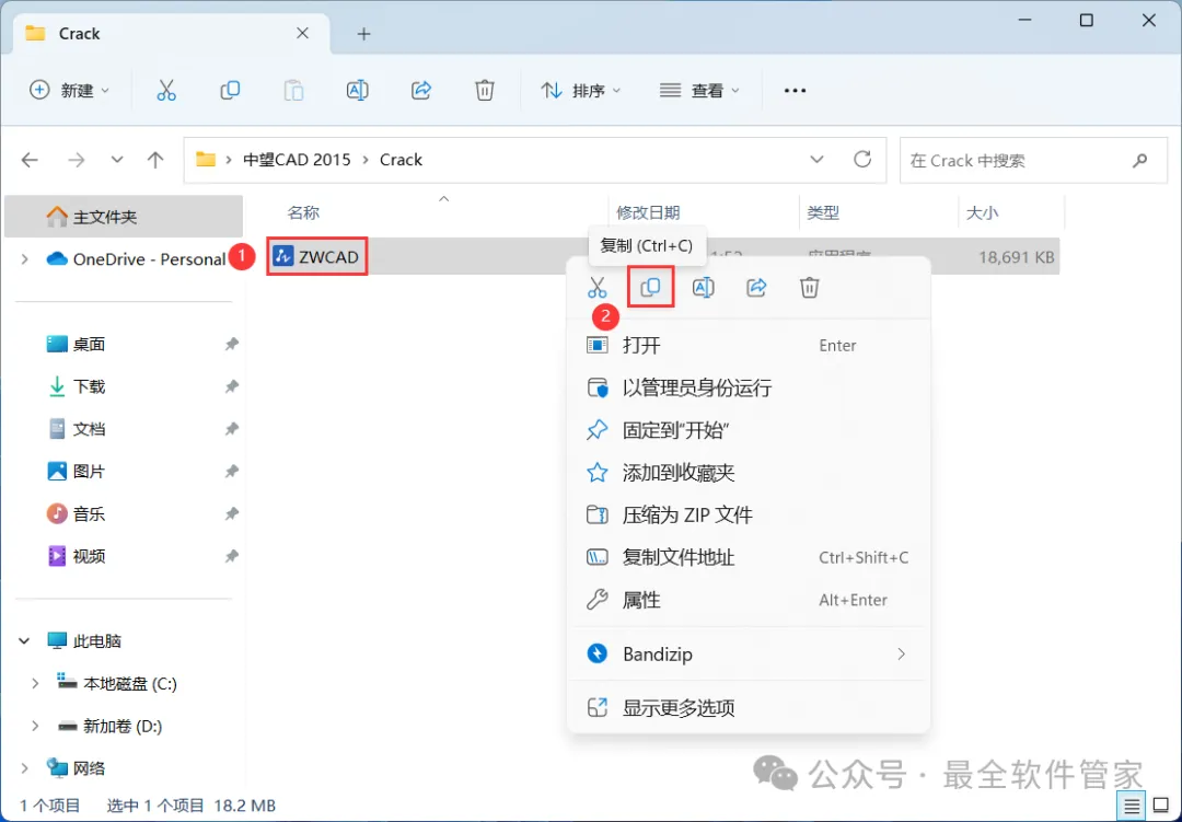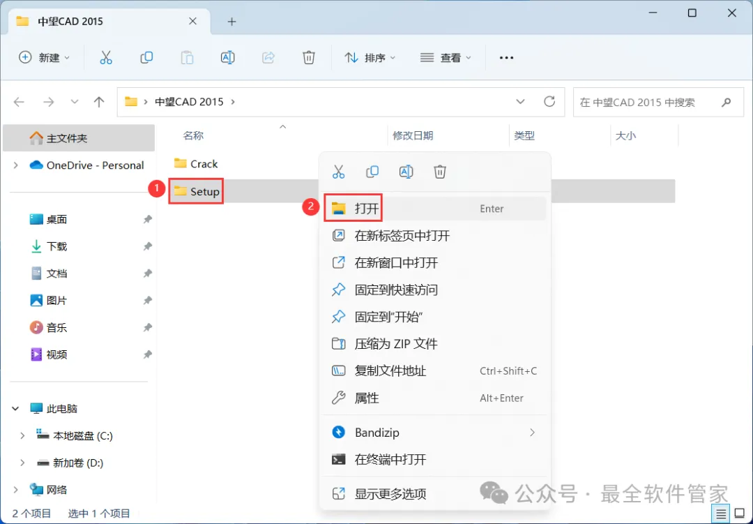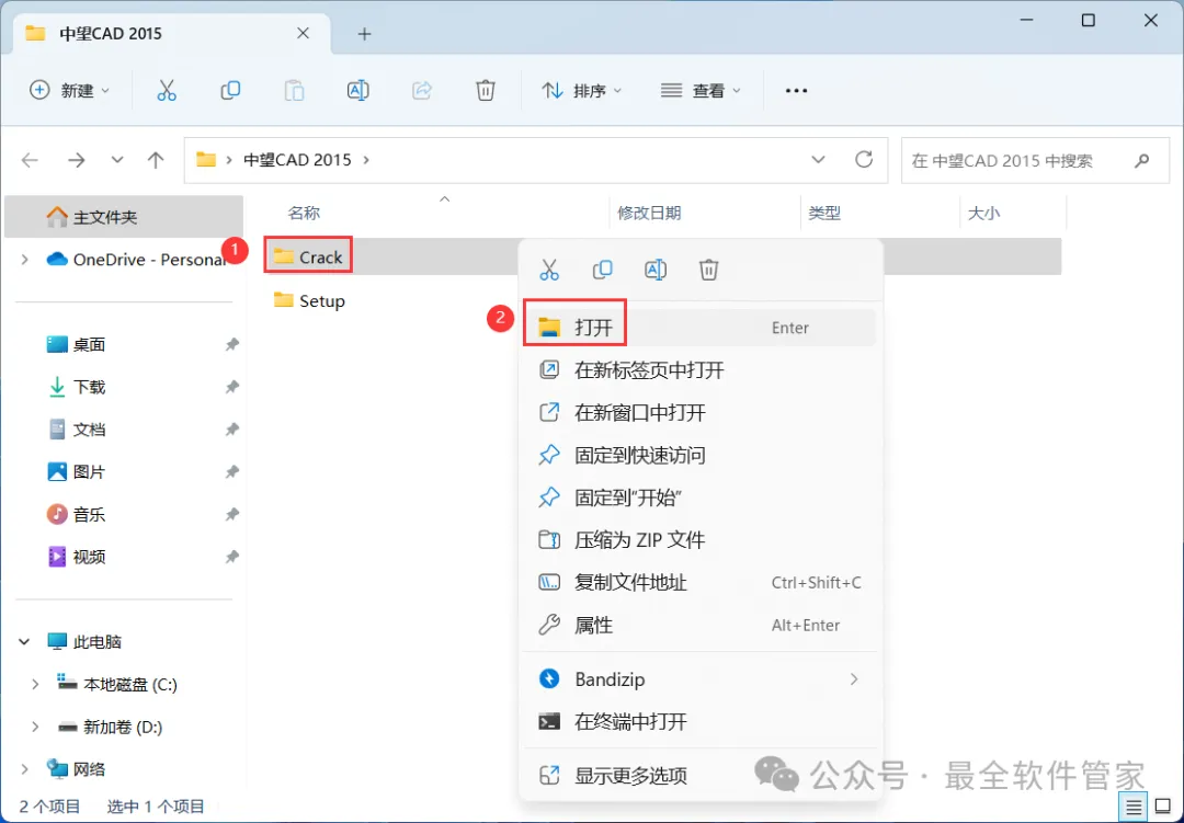 12、回到中望CAD 2015文件夹,找到【Crack】文件夹,右键【打开】它