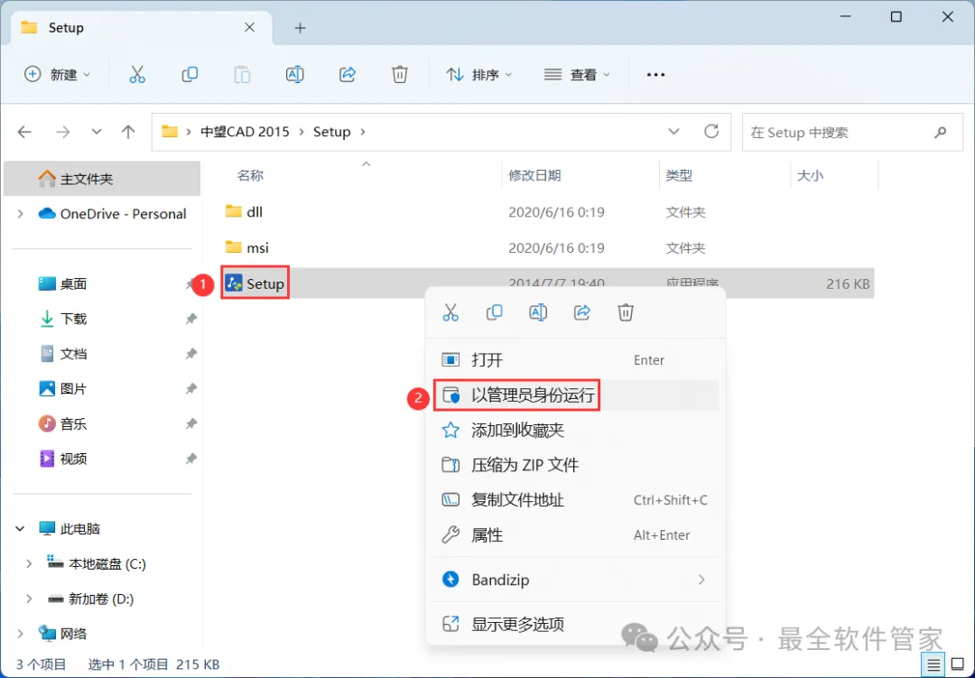 4、找到【Setup】应用程序,右键选择【以管理员身份运行】它