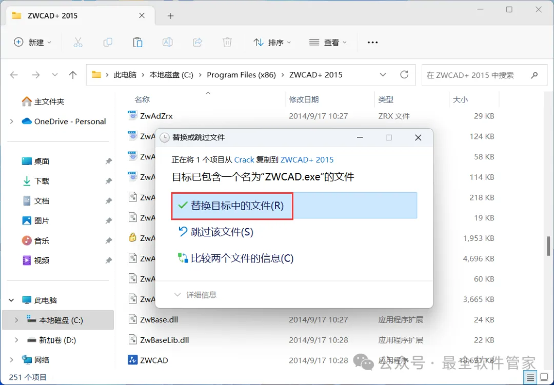 16、点击【替换目标中的文件】