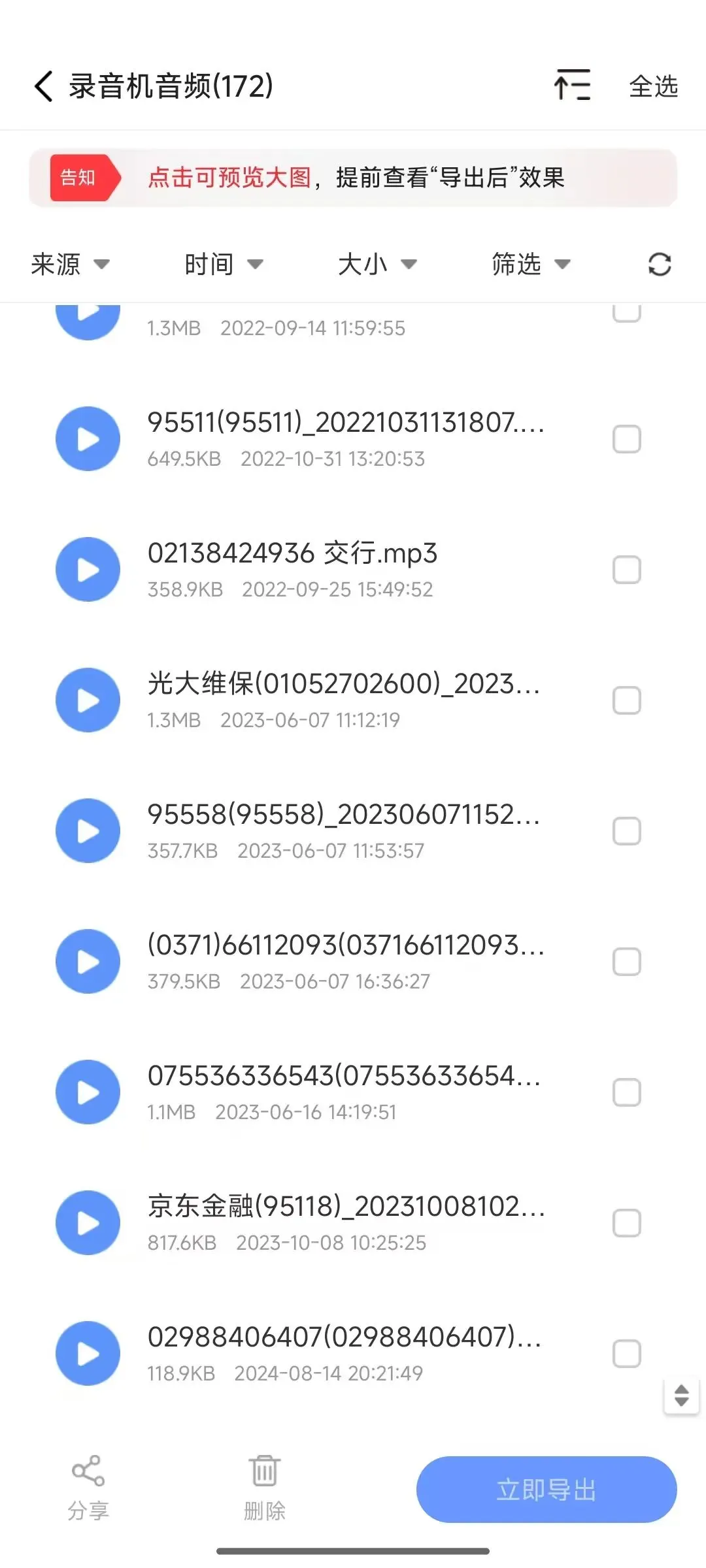 音频查找--录音机音频一共搜到了172个音频文件