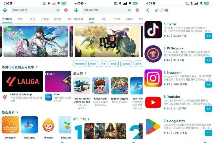 它为用户提供了大量的应用程序和游戏下载选项。您可以在平台上找到各种类别的应用程序,包括社交媒体、工具、娱乐、学习、生产力等。