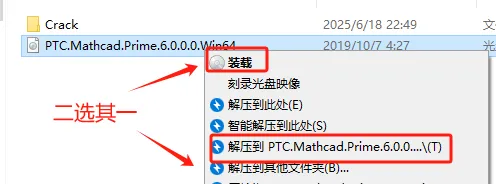 第三步:打开解压后的文件夹,找到【PTC.Mathcad.Prime.6.0.0.0.Win64】右击,选择装载或解压到。