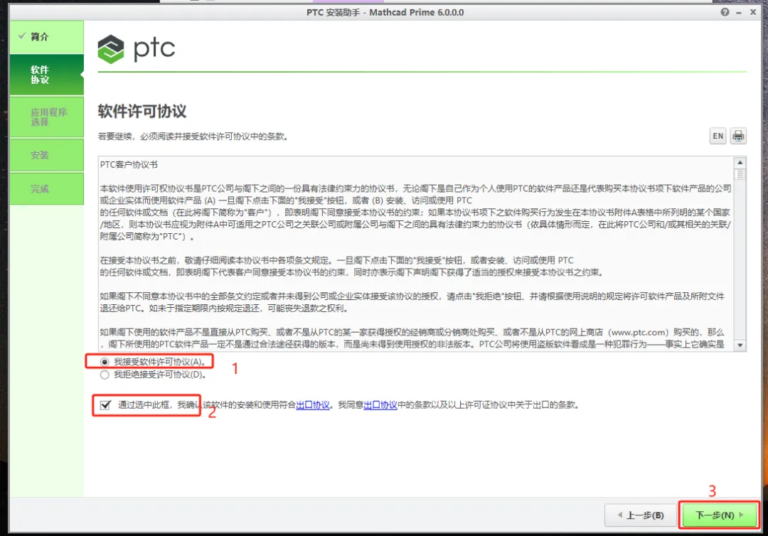 第六步:勾选【我接受……】和【通过...】,然后点击【下一步】。