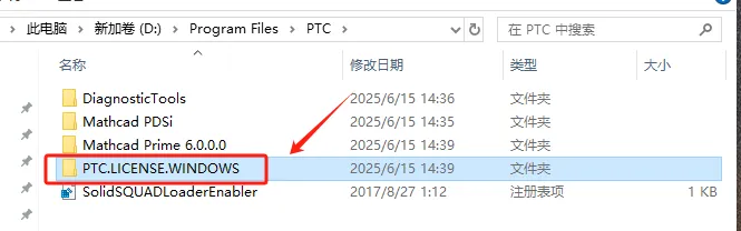 第十五步:打开刚刚拷过来的(PTC文件夹下)【PTC.LICENSE.WINDOWS】文件夹。