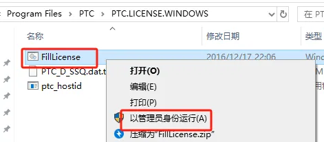 第十六步:选中【FillLicense】,右击以管理员身份运行。