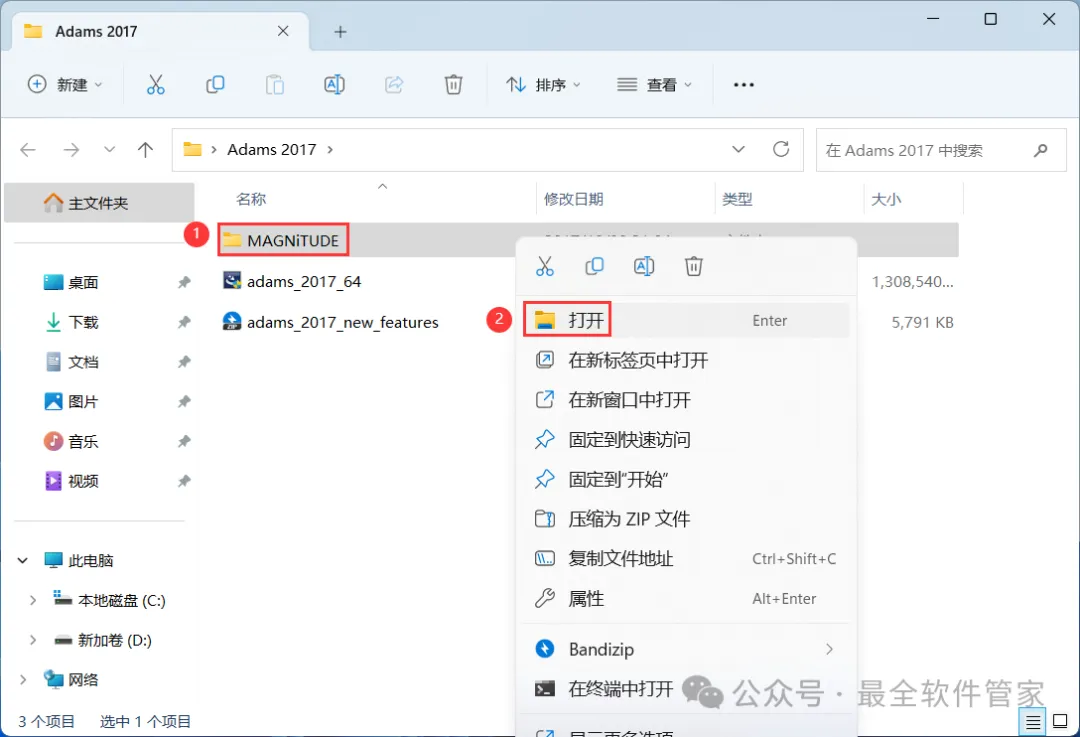 1、下载Adams 2017软件安装包到电脑上,右键选择【解压到Adams 2017\】