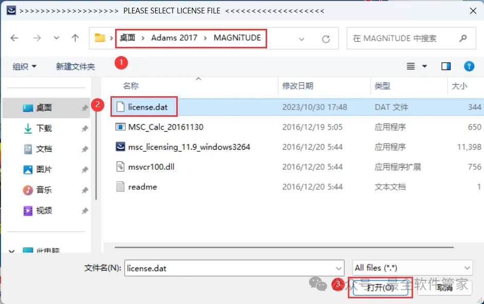 13、找到并选中安装包MAGNiTUDE文件夹下的【license.dat】文件,再点击【打开】