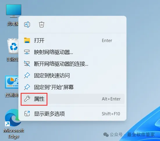 32、回到桌面,右键【此电脑图标】,点击【属性】