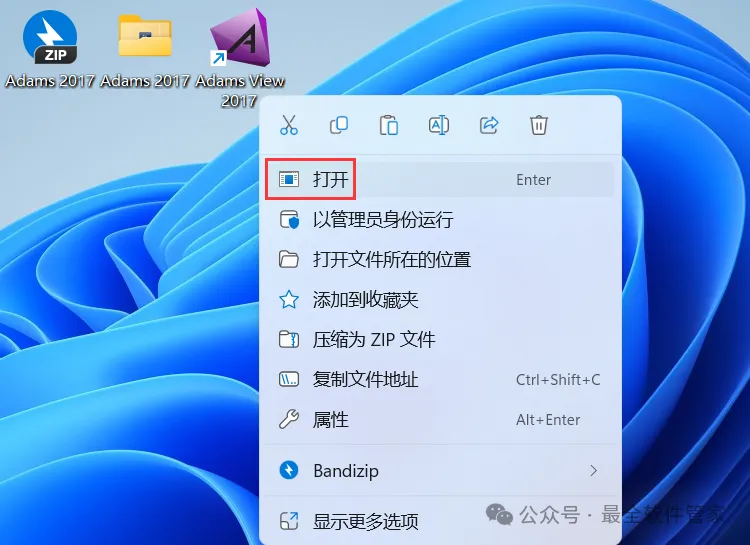 39、回到桌面,右键桌面上的【Adams View 2017软件图标】,点击【打开】