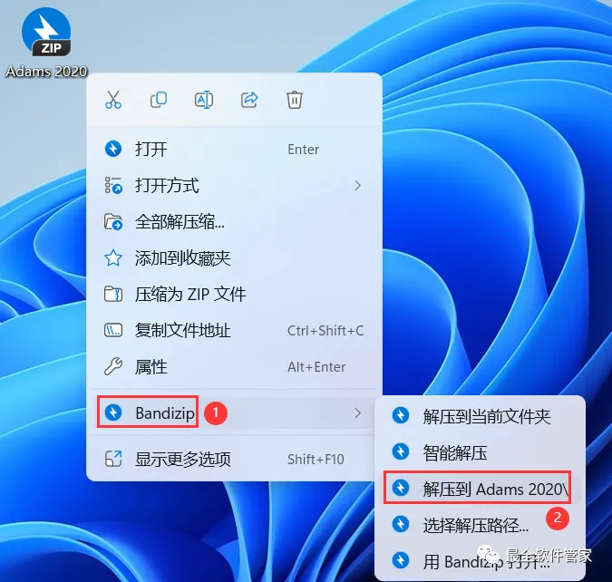 1、下载Adams 2020软件安装包到电脑上,右键选择【解压到Adams 2020\】
