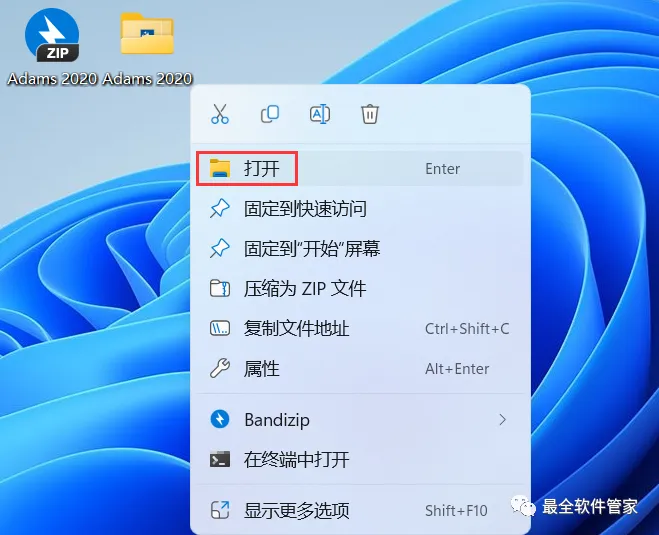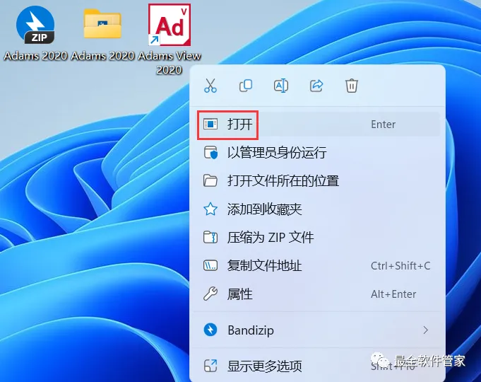 43、回到桌面,右键桌面上的【Adams View 2020软件图标】,点击【打开】