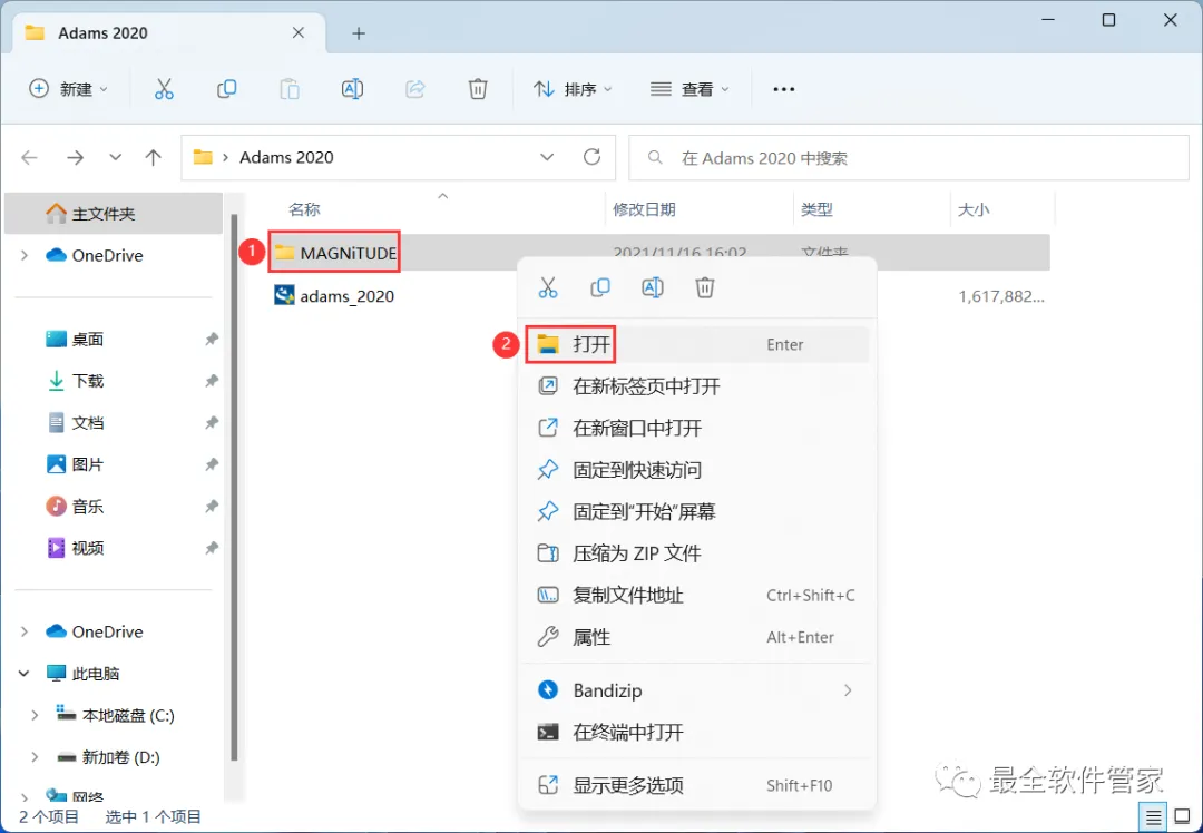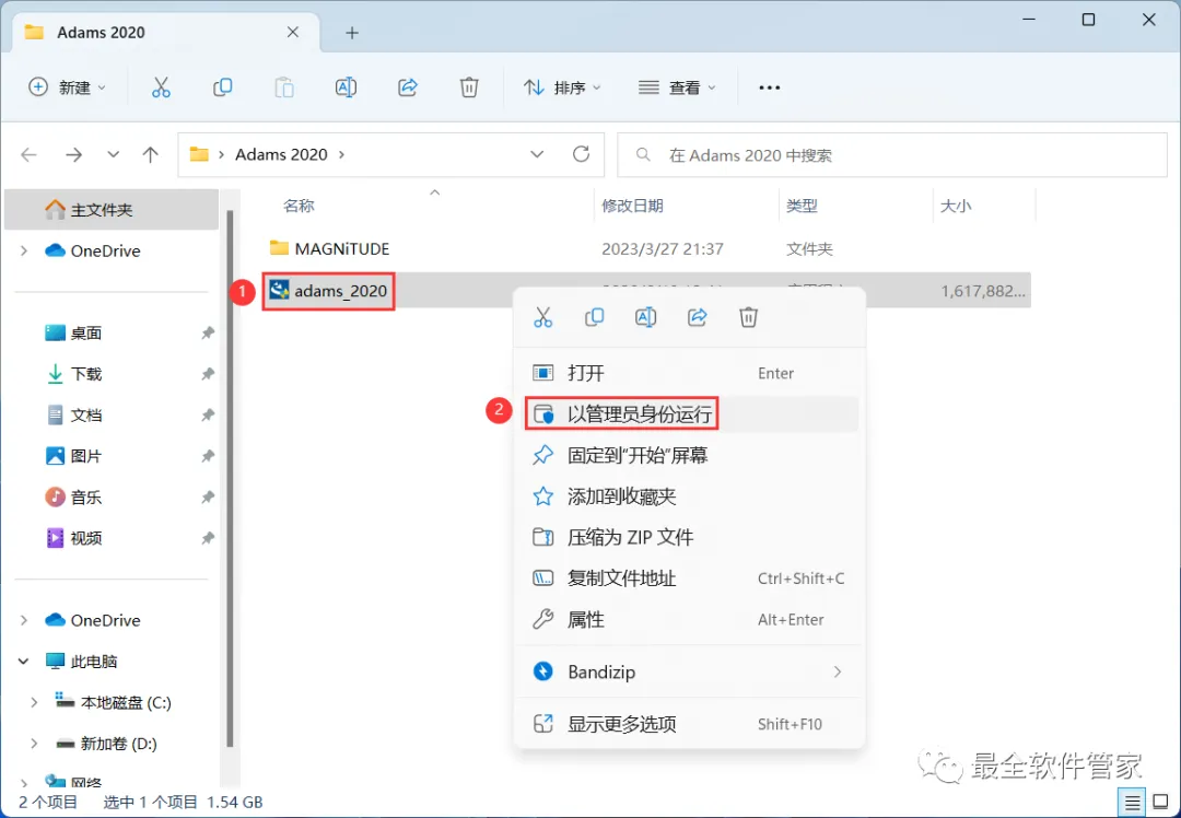21、回到Adams 2020文件夹,找到【admas_2020】应用程序,右键选择【以管理员身份运行】它