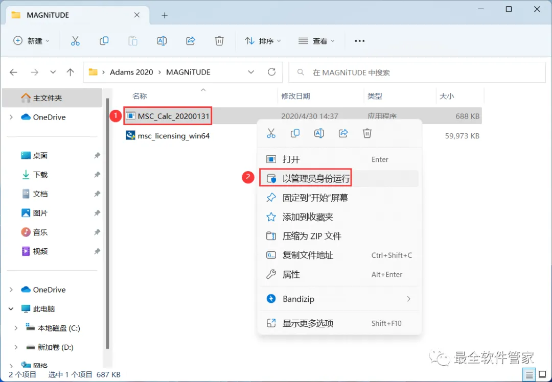4、找到【MSC_Calc_20200131】应用程序,右键选择【以管理员身份运行】它