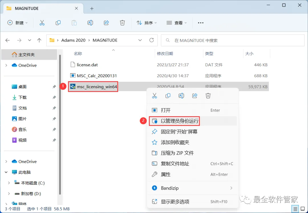 8、找到【msc_license_win64】应用程序,右键选择【以管理员身份运行】它