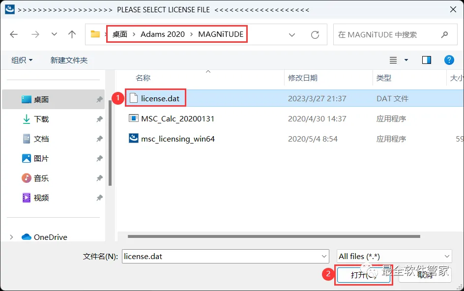 13、找到并选中MAGNiTUDE文件夹下的【license.dat】文件,再点击【打开】