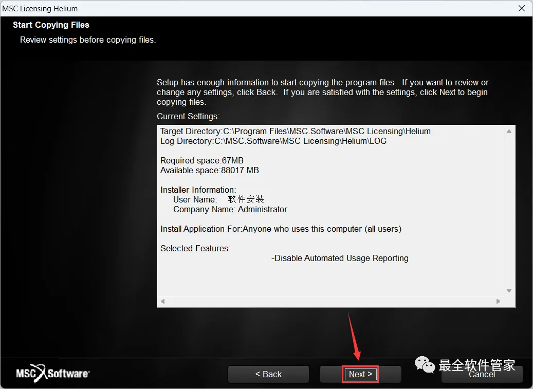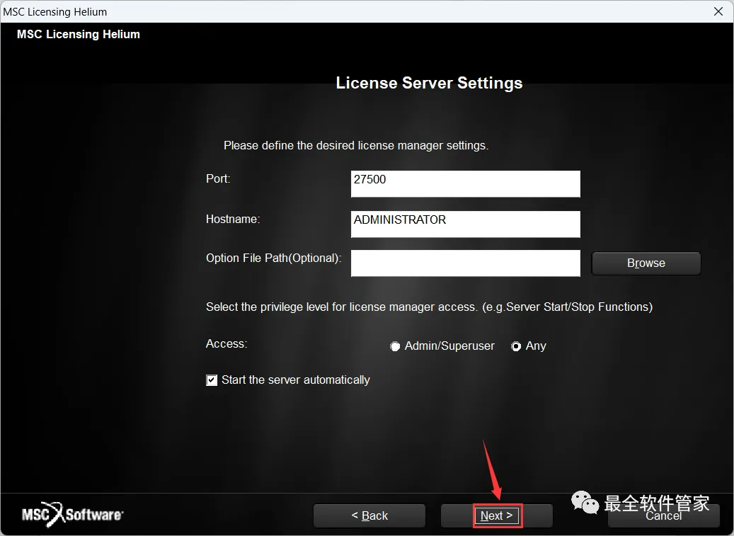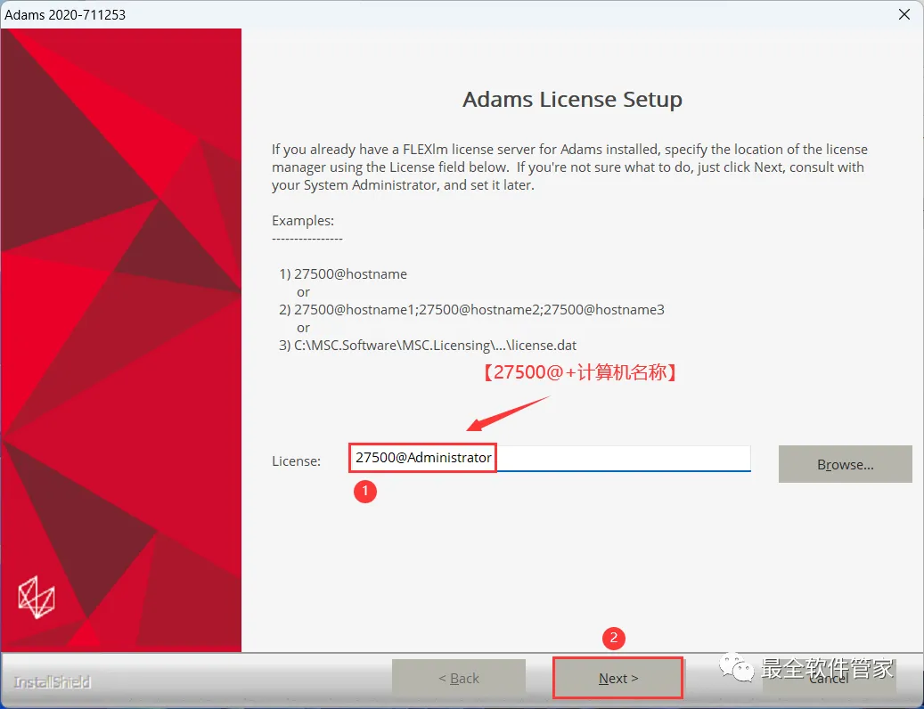 28、License一栏输入:【27500@+计算机名】,我的计算机名是Administrator,所以输入:27500@Administrator