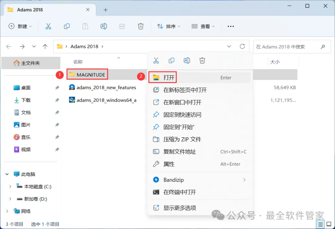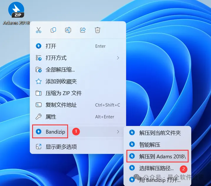 1、下载Adams 2018软件安装包到电脑上,右键选择【解压到Adams 2018\】