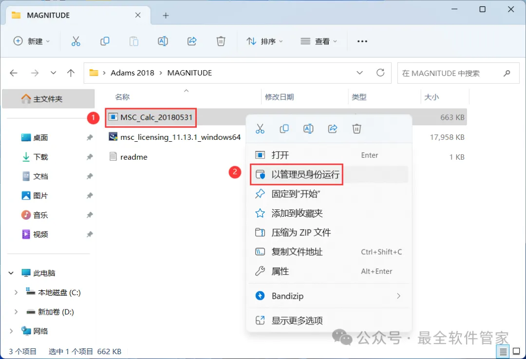 4、找到【MSC_Calc_2018】应用程序,右键选择【以管理员身份运行】它