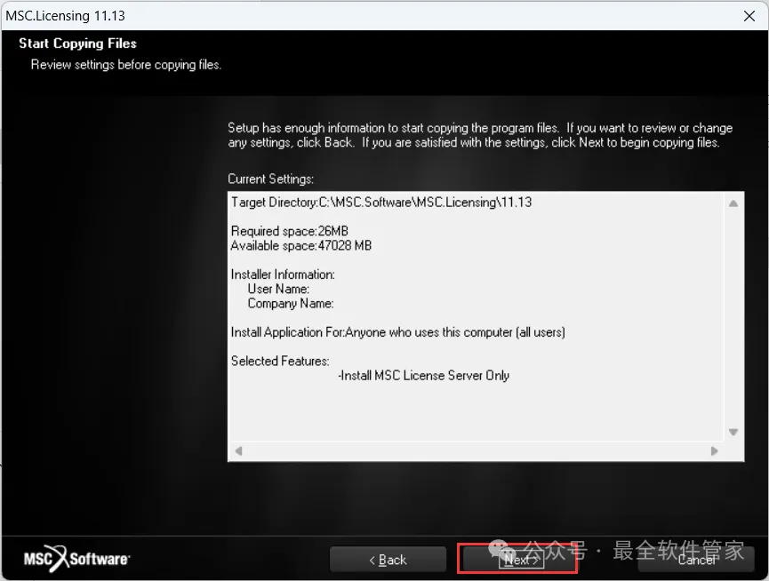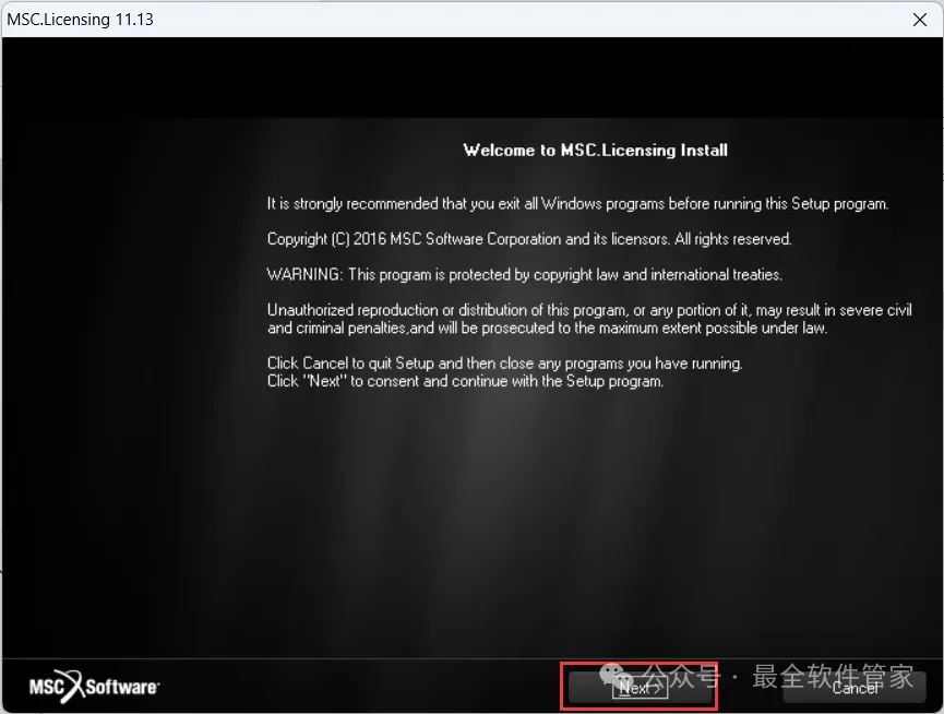 11、勾选【Install MSC…】,再点击【Next】