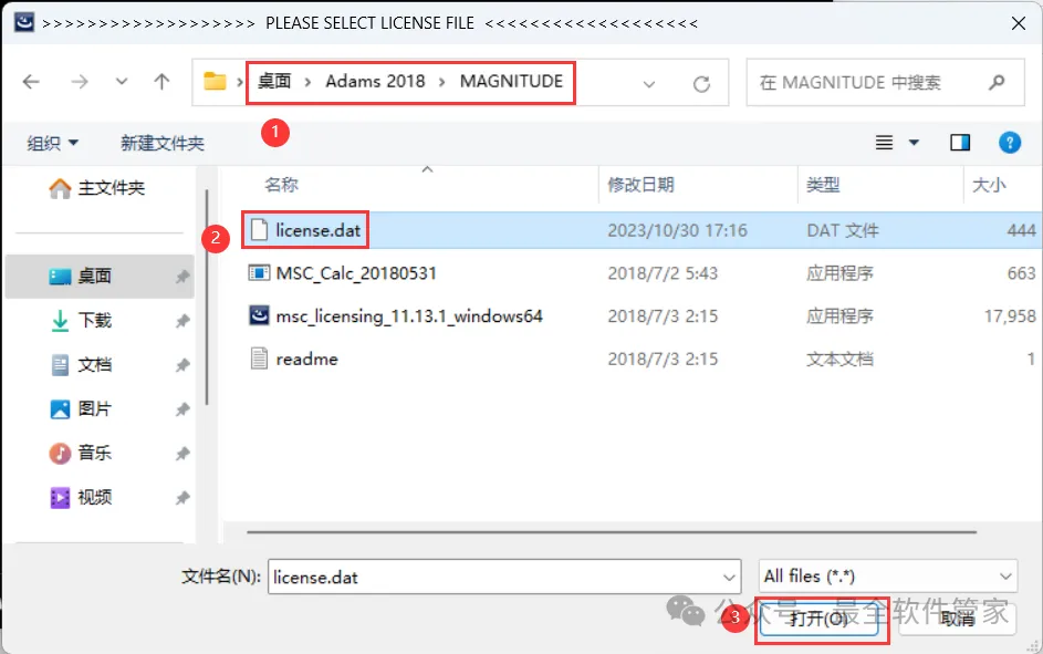 14、找到并选中安装包MAGNiTUDE文件夹下的【license.dat】文件,再点击【打开】