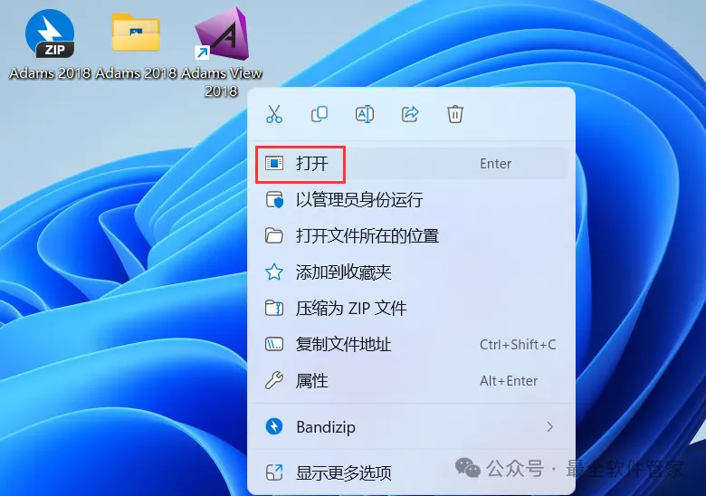 40、回到桌面,右键桌面上的【Adams View 2018软件图标】,点击【打开】