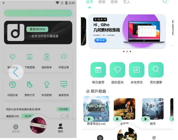 2️⃣ 魔音音乐(Android平台) 特点:涵盖新歌、热歌、影视原声等丰富榜单,支持按艺人检索 功能:外部歌单导入、离线缓存、铃声制作