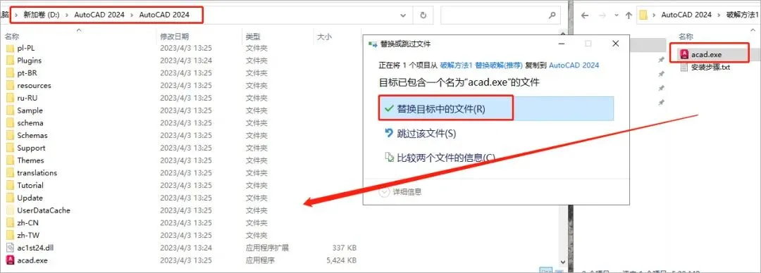 1、下载解压,得到cad2024免费中文版,以及相应的破解文件(三种方法激活);
