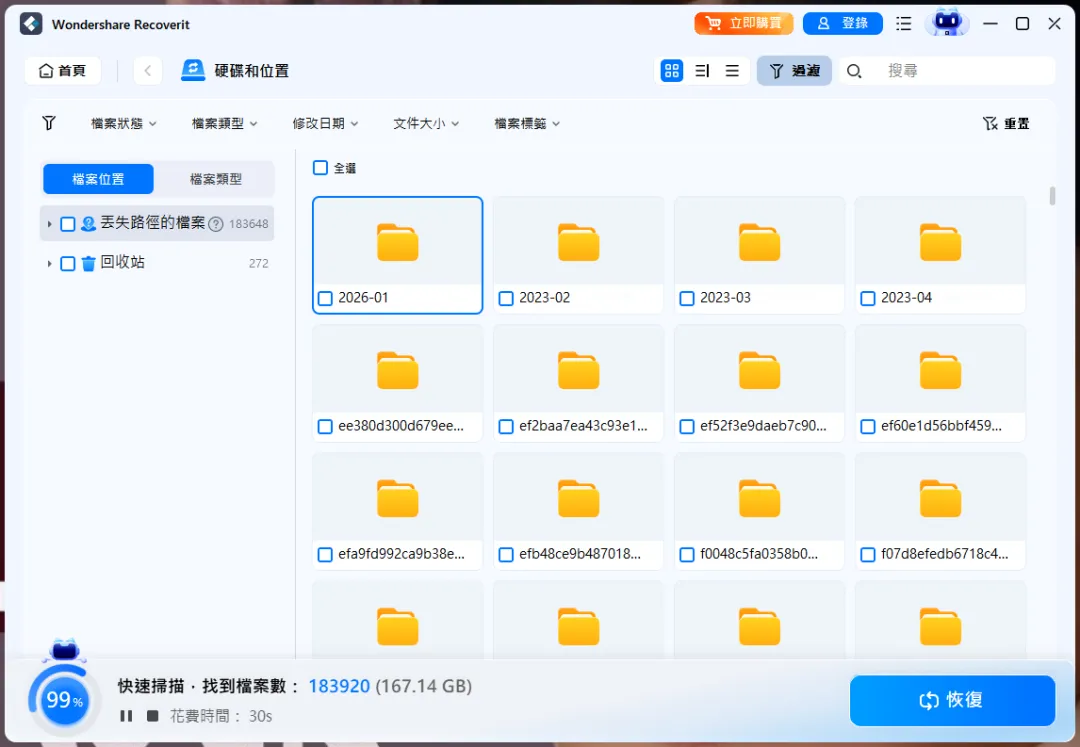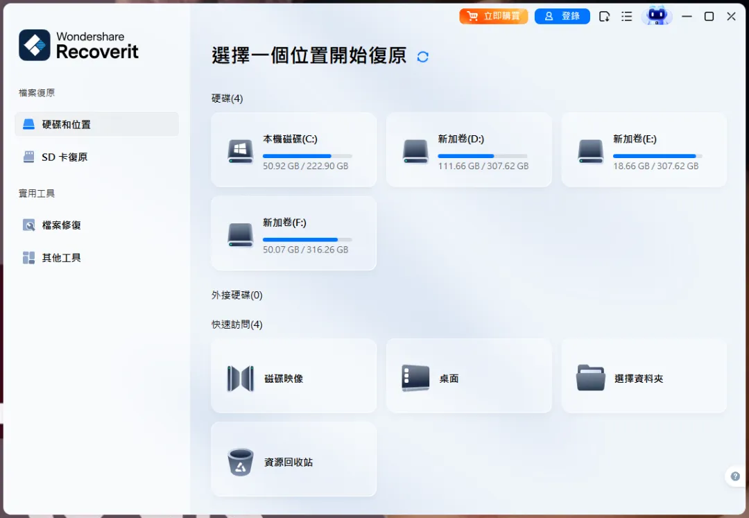 Wondershare Recoverit(万兴数据恢复)是款非常强大的数据恢复软件,支持恢复各类存储位置的所有丢失数据,兼容的文件格式超550种,几乎涵盖全部图像文件、多媒体文件、电子邮件、压缩档案等常用格式。今天带来的是特殊处理版本,请放心使用(如遇更新提示请无视。)