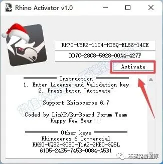 温馨提示:若打开没有“RhinoActivator.exe”文件,说明被电脑杀毒软件隔离了,请关闭电脑上的“杀毒软件、防火墙”,Win10系统还需关闭“Windows Defender”(部分电脑自带“迈克菲”也要关闭),重新解压“Activator.zip”压缩包即可