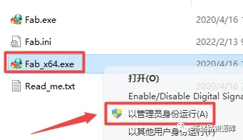 15.返回之前解压的“Rhino7.9”文件夹,双击打开“禁止联网”,找到并选中“Fab_x64.exe”,鼠标右键点击“以管理员身份运行”