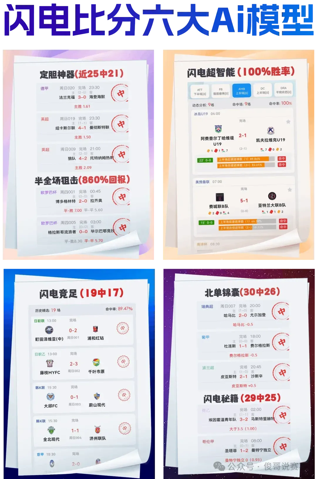 很多兄弟在都知道彩客网但是很多兄弟不知道其实闪电比分也很好用哦,平台不单单可以看实时比分直播,还有AI对比赛的预测,包括竞彩串子、半全场、角球、等等!!还有独家足球情报,国内外知名专家!!还有实时比分,独家情报,一手足球资讯,海内外专家预测!!