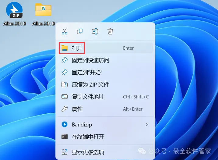 10、回到桌面,右键桌面上的【Autodesk Alias 2018软件图标】,点击【打开】