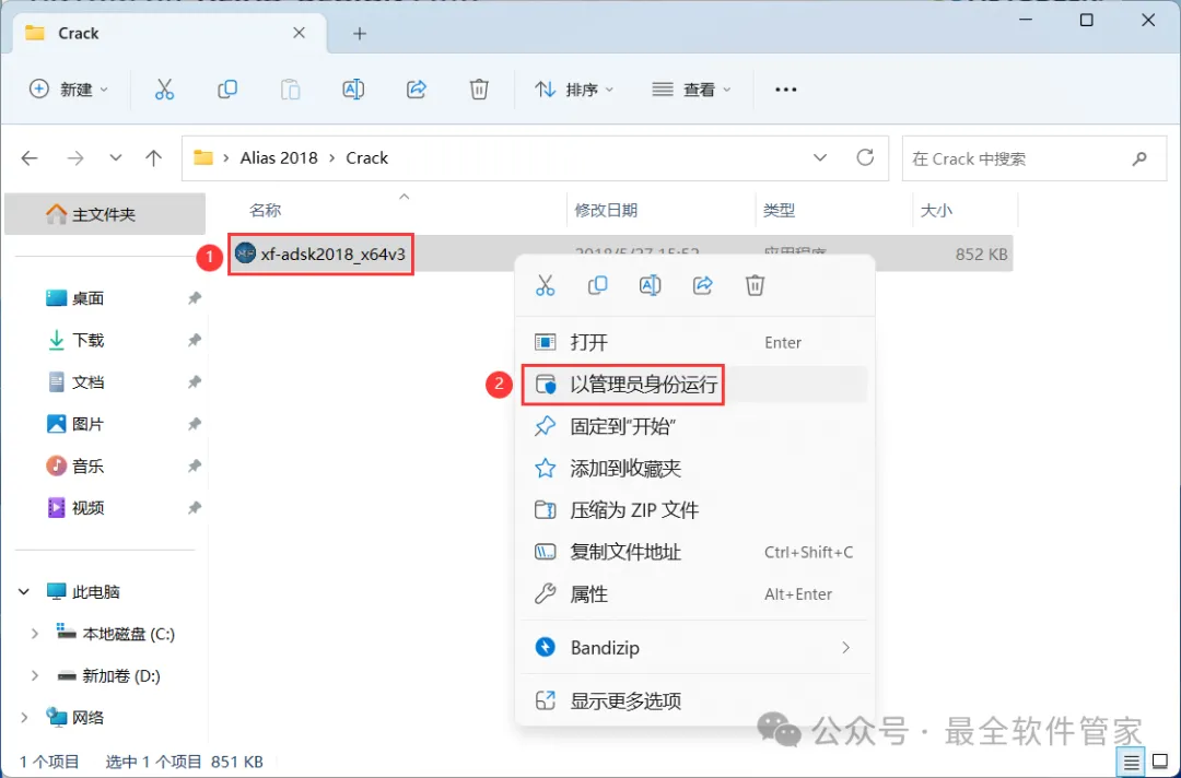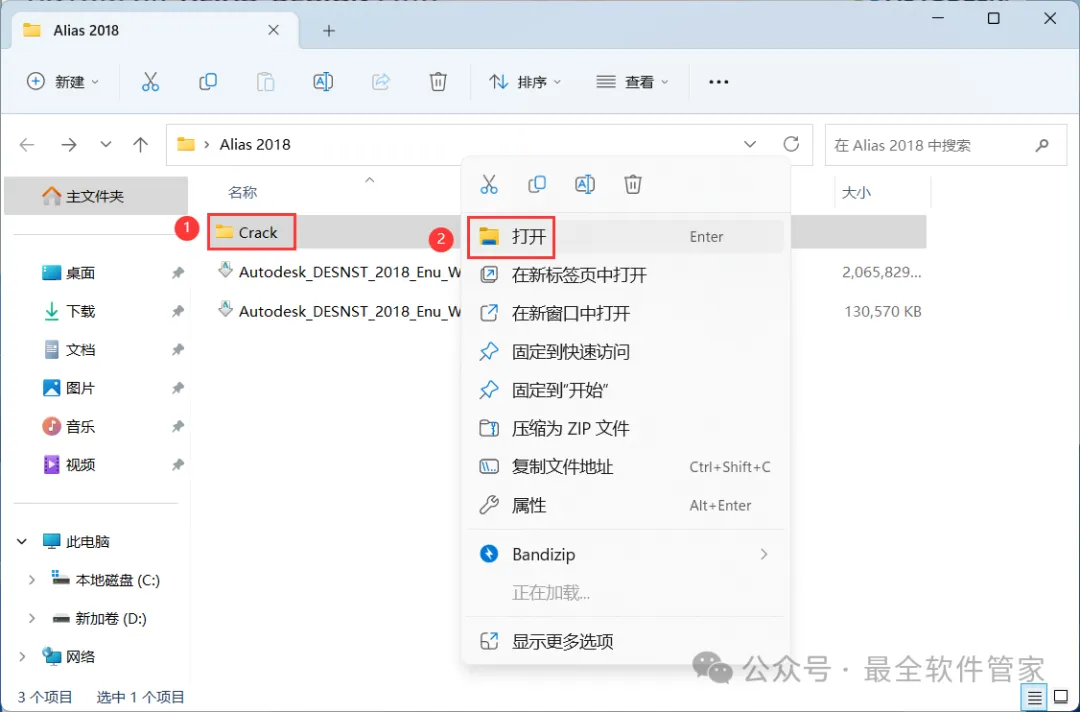 19、回到Alias 2018文件夹,找到【Crack】文件夹,右键【打开】它