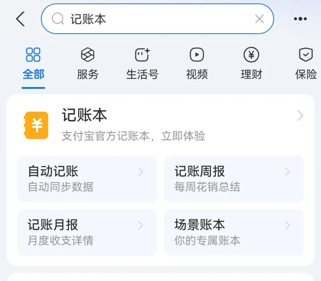 支付宝作为深入人心的支付软件,几乎人人都有,可以直接在搜索框搜索记账本
