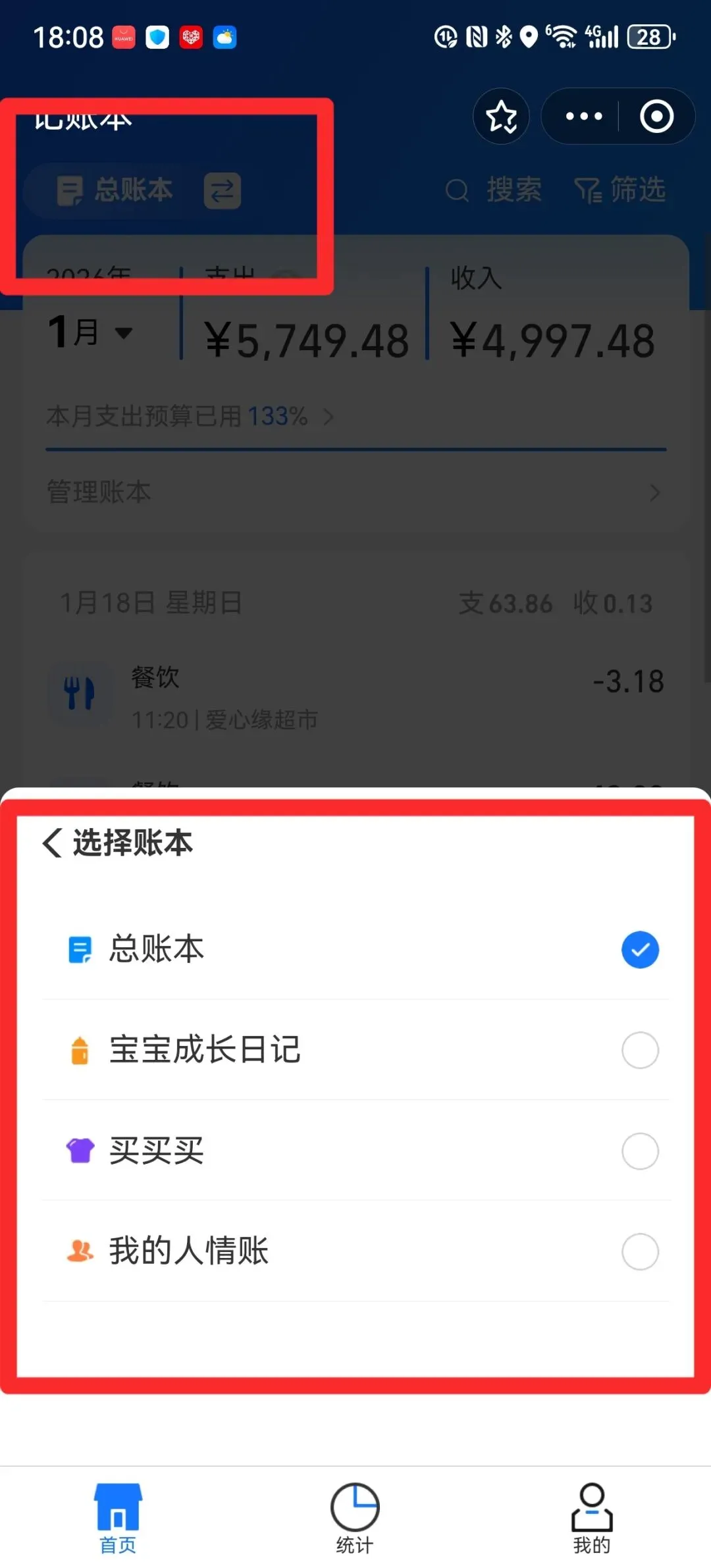 点开总账本之后,可以增加子账本,比如我就增加了和孩子有关的账本,