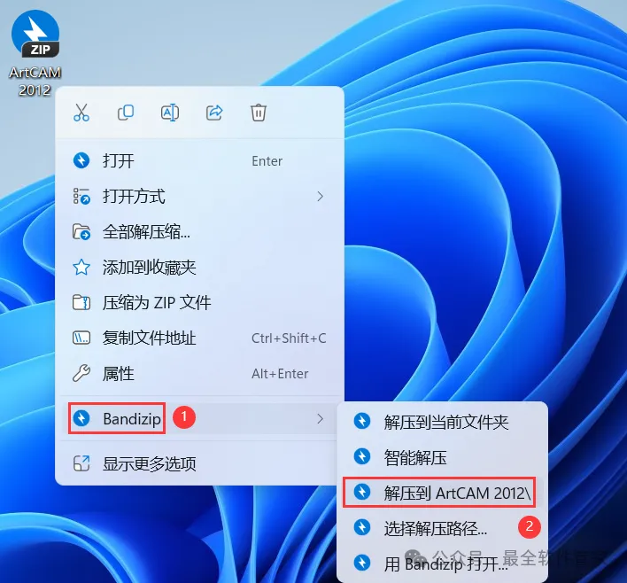 1、下载ArtCAM 2012软件安装包到电脑上,右键选择【解压到ArtCAM 2012\】