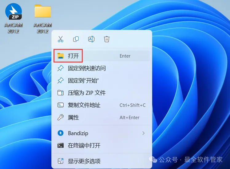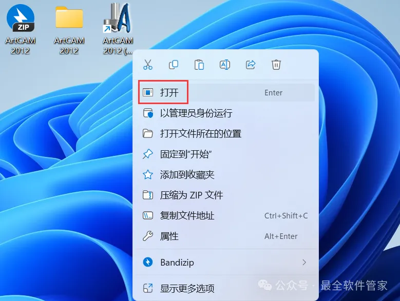 21、回到桌面,右键桌面上的【ArtCAM 2012软件图标】,点击【打开】