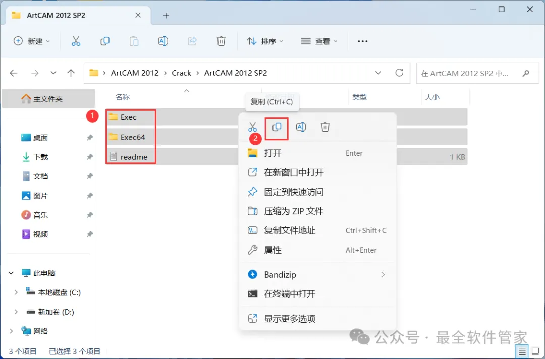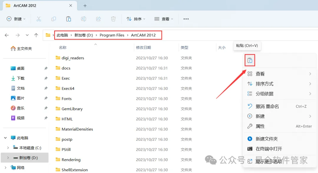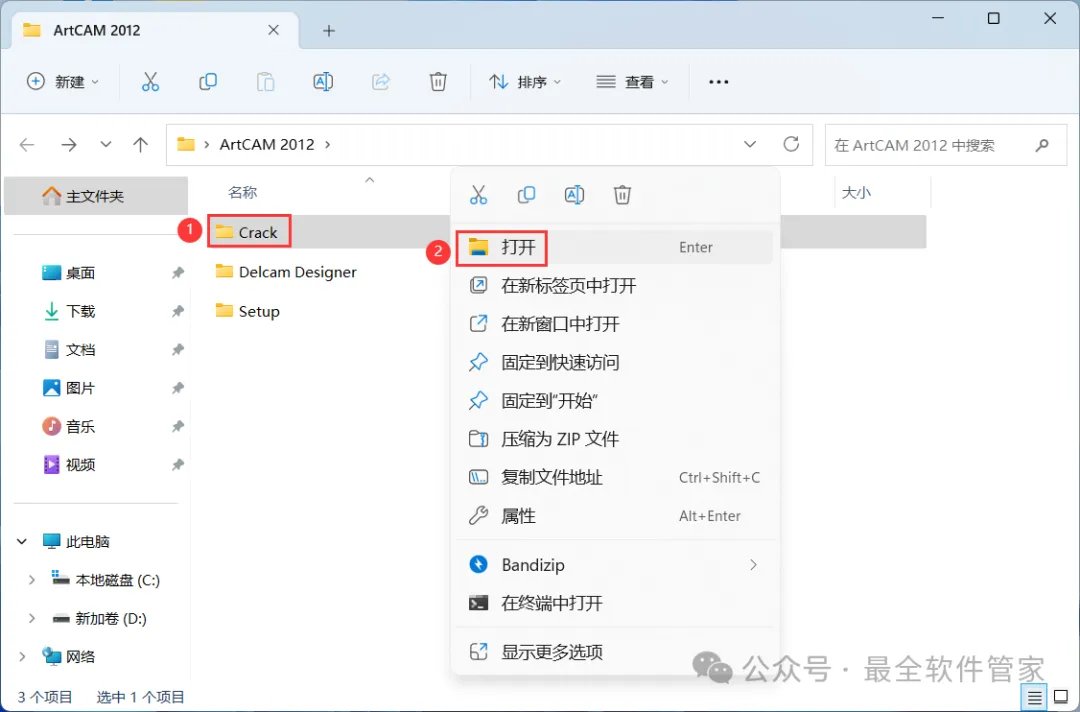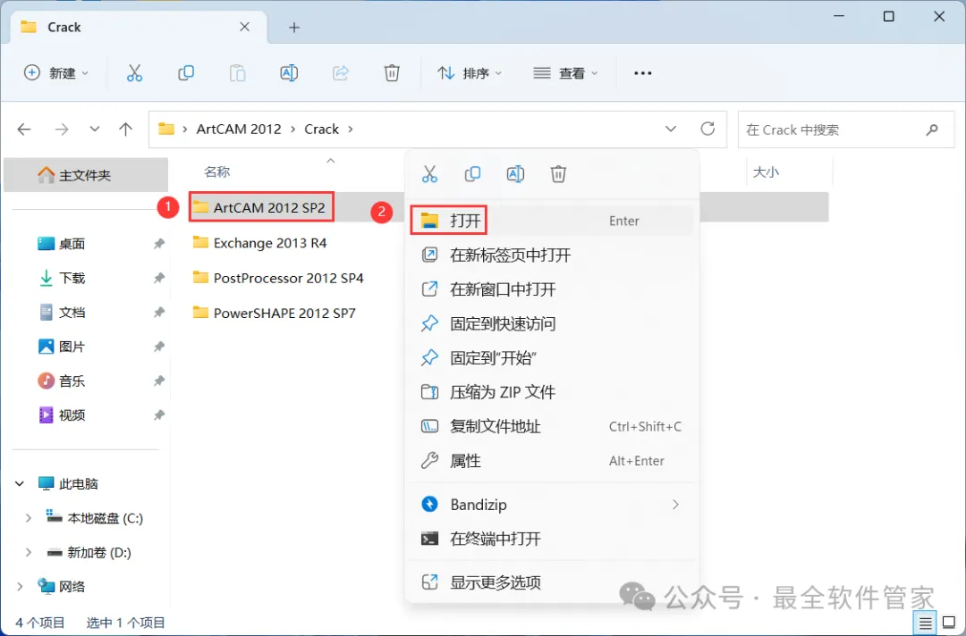 14、回到ArtCAM 2012文件夹,找到【Crack】文件夹,右键【打开】它