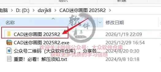 2.然后找到解压后的CAD迷你画图 2025R2文件夹,双击打开文件。