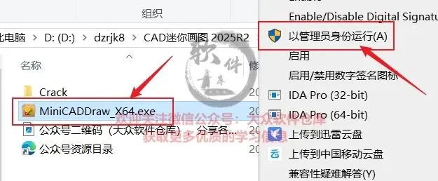 3.管理员身份运行MiniCADDraw_X64.exe安装程序;