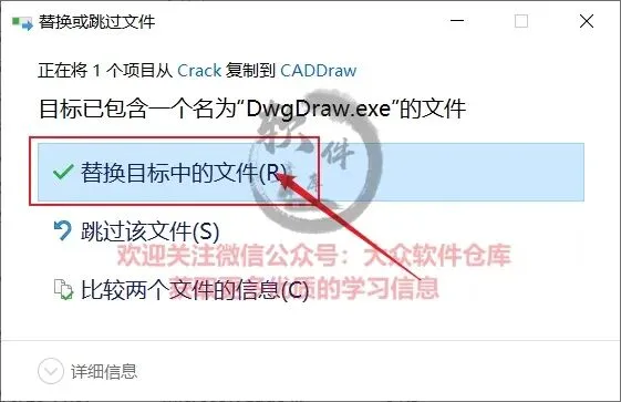 10.点击替换目标中的文件;