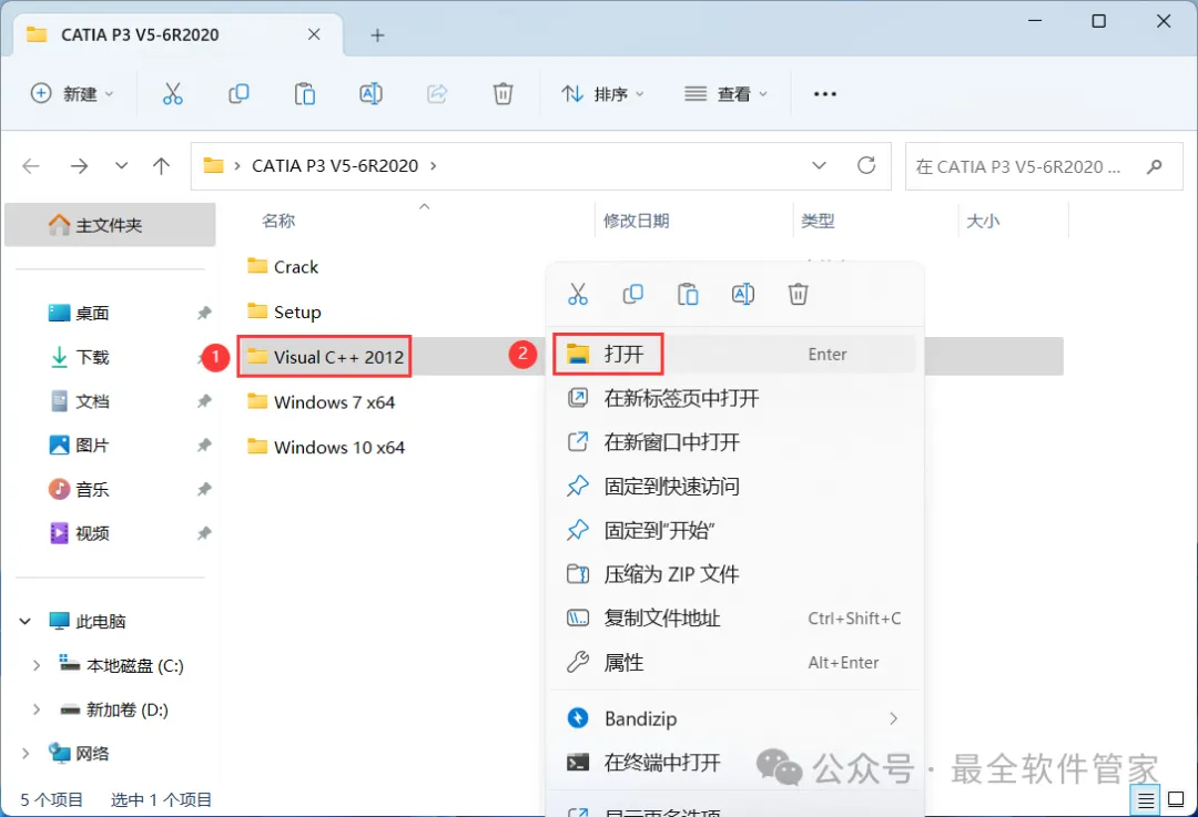[软件名称]:CATIA P3 V5-6R2020[不限速下载]:免费获取百度网盘不限速下载工具。公众号内回复:不限速[注意事项]:安装前请关闭网络、杀毒软件和防火墙,否则易安装失败。公众号内回复:1[解压软件]:小编用的解压软件是Bandizip,获取Bandizip软件安装包。公众号内回复:21、下载CATIA P3 V5-6R2020软件安装包到电脑上,右键选择【解压到CATIA P3 V5-6R2020\】4、找到【setup】应用程序,右键选择【以管理员身份运行】它 6、软件默认安装在C盘,可自定义更改软件安装位置,这里小编选择安装在D盘;点击【下一步】 18、回到桌面,按下快捷键【WIN图标+R】,输入【services.msc】,再点击【确定】19、找到【Backibone Services】,再右键点击【属性】20、启动类型选择【禁用】,点击【停止】,再点击【确定】 21、回到CATIA P3 V5-6R2020文件夹,找到【Crack】文件夹,右键【打开】它 23、回到桌面,右键桌面上的【CATIA P3 V5-6R2020软件图标】,点击【打开文件所在的位置】 26、回到桌面,右键任务栏的【开始菜单】,再点击【设备管理器】27、点击电脑名称【DESKTOP…】,再点击【操作】 34、选中安装包Windows 10 x64文件夹下的【Virtnet.inf】文件,再点击【打开】 39、回到设备管理器,依次点击【网络适配器】,右键【VirNet Network Adoater…】,再点击【禁用设备】 41、右键【VirNet Network Adoater…】,再点击【属性】 42、依次点击【高级】,值输入:10E7C61B9F4D,再点击【确定】 43、回到桌面,按下快捷键【WIN图标+R】,输入【regedit】,再点击【确定】 44、依次展开【HKEY_LOCAL_MACHINE】、【SYSTEM】、【ControlSet001】、【Control】文件夹,右键【Class】文件夹,点击【查找】45、查找目标输入:VirNetMacAddress,再点击【查找下一个】 46、右键VirNetMacAddress文件,再点击【修改】47、数值数据修改成:3085A994CF91,再点击【确定】 48、回到设备管理器,右键【VirNet Network Adoater…】,再点击【启用设备】49、回到CATIA P3 V5-6R2020文件夹,找到【Visual C++ 2012】文件夹,右键【打开】它 50、找到【vcredist_x64】应用程序,右键选择【以管理员身份运行】它51、电脑上没安装此程序的继续安装,已安装的点击【Close】 52、回到桌面,右键桌面上的【CATIA P3 V5-6R2020软件图标】,点击【打开】54、勾选【可用的配置或产品列表】,取消勾选【DIC-CATIA…】、【ED2-CATIA…】和【I3D-CATIA…】,再点击【确定】 56、以上就是CATIA P3 V5-6R2020软件安装的全过程,要是对你有帮助的话,请为小编点个赞!免责声明:软件资源均来源于网络,仅供用户交流学习与研究使用,版权归属原版权方所有,版权争议与本公众号无关,用户本人下载后不能用作商业或非法用途,否则后果均由用户承担责任;如果您访问和下载此文件,表示您同意只将此软件用于参考、学习而非其他用途,否则一切后果请您自行承担,请于下载后24小时内删除,不允许用于商业用途,否则法律问题自行承担。如果您喜欢该软件,请支持正版软件,购买注册,得到更好的正版服务。