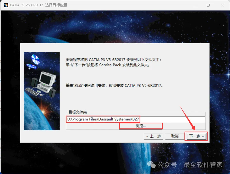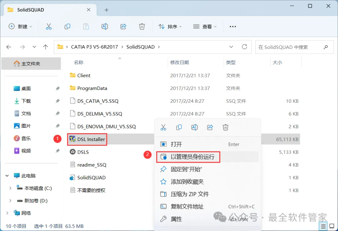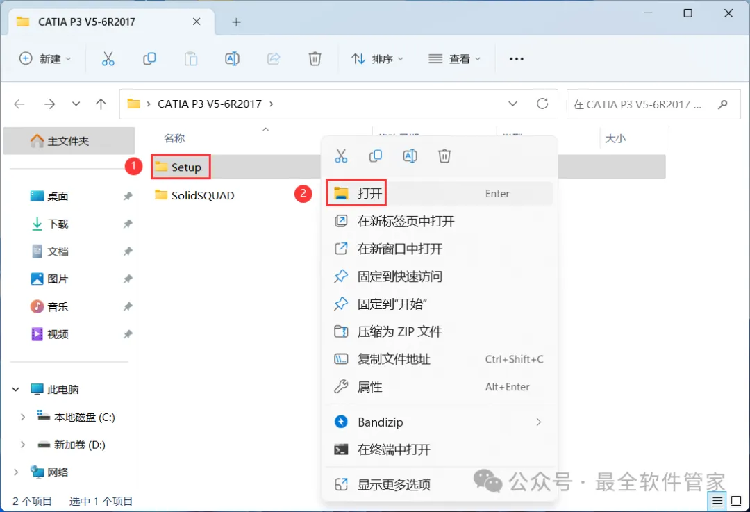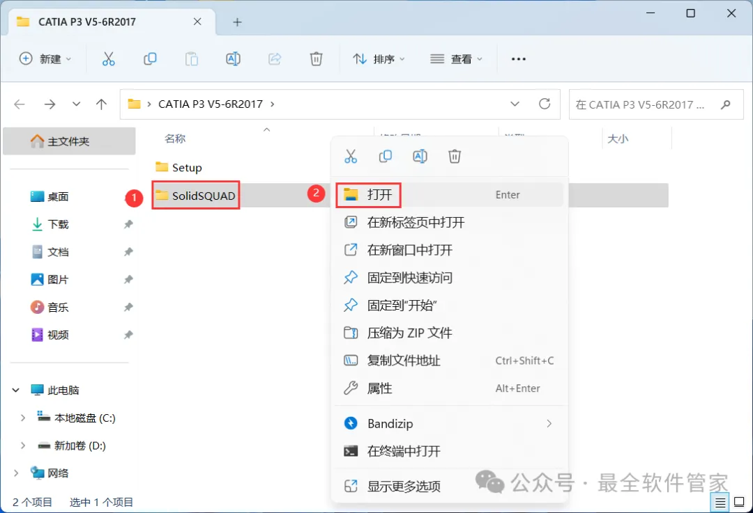 [软件名称]:CATIA P3 V5-6R2017[不限速下载]:免费获取百度网盘不限速下载工具。公众号内回复:不限速[注意事项]:安装前请关闭网络、杀毒软件和防火墙,否则易安装失败。公众号内回复:1[解压软件]:小编用的解压软件是Bandizip,获取Bandizip软件安装包。公众号内回复:21、下载CATIA P3 V5-6R2017软件安装包到电脑上,右键选择【解压到CATIA P3 V5-6R2017\】4、找到【setup】应用程序,右键选择【以管理员身份运行】它 6、软件默认安装在C盘,可自定义更改软件安装位置,这里小编选择安装在D盘;点击【下一步】 18、回到CATIA P3 V5-6R2017文件夹,找到【SolidSQUAD】文件夹,右键【打开】它19、找到【DSL Installer】应用程序,右键选择【以管理员身份运行】它24、回到桌面,点击任务栏的【开始菜单】,在【所有应用】中找到【DS License Server Administration图标】,点击运行它25、回到桌面,右键桌面上的【CATIA P3 V5-6R2017软件图标】,点击【打开】 27、勾选【可用的配置或产品列表】,取消勾选【DIC-CATIA…】、【ED2-CATIA…】和【I3D-CATIA…】,再点击【确定】29、以上就是CATIA P3 V5-6R2017软件安装的全过程,要是对你有帮助的话,请为小编点个赞!免责声明:软件资源均来源于网络,仅供用户交流学习与研究使用,版权归属原版权方所有,版权争议与本公众号无关,用户本人下载后不能用作商业或非法用途,否则后果均由用户承担责任;如果您访问和下载此文件,表示您同意只将此软件用于参考、学习而非其他用途,否则一切后果请您自行承担,请于下载后24小时内删除,不允许用于商业用途,否则法律问题自行承担。如果您喜欢该软件,请支持正版软件,购买注册,得到更好的正版服务。