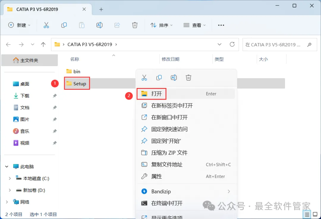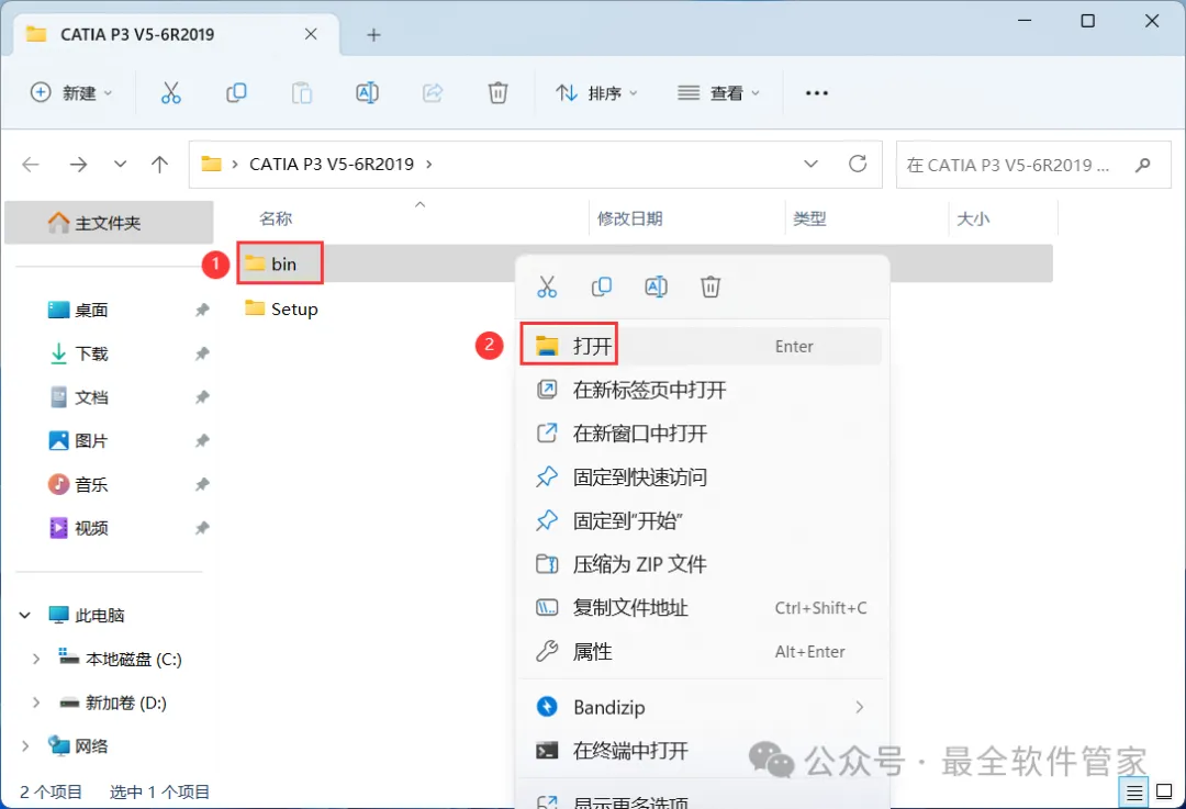 [软件名称]:CATIA P3 V5-6R2019[不限速下载]:免费获取百度网盘不限速下载工具。公众号内回复:不限速[注意事项]:安装前请关闭网络、杀毒软件和防火墙,否则易安装失败。公众号内回复:1[解压软件]:小编用的解压软件是Bandizip,获取Bandizip软件安装包。公众号内回复:21、下载CATIA P3 V5-6R2019软件安装包到电脑上,右键选择【解压到CATIA P3 V5-6R2019\】4、找到【setup】应用程序,右键选择【以管理员身份运行】它 6、软件默认安装在C盘,可自定义更改软件安装位置,这里小编选择安装在D盘;点击【下一步】 18、回到CATIA P3 V5-6R2019文件夹,找到【bin】文件夹,右键【打开】它20、回到桌面,右键桌面上的【CATIA P3 V5-6R2019软件图标】,点击【打开文件所在的位置】 23、回到桌面,右键桌面上的【CATIA P3 V5-6R2019软件图标】,点击【打开】25、点击【许可证发放】,勾选【可用的配置或产品列表】,取消勾选【DIC-CATIA…】、【ED2-CATIA…】和【I3D-CATIA…】,再点击【确定】27、以上就是CATIA P3 V5-6R2019软件安装的全过程,要是对你有帮助的话,请为小编点个赞!免责声明:软件资源均来源于网络,仅供用户交流学习与研究使用,版权归属原版权方所有,版权争议与本公众号无关,用户本人下载后不能用作商业或非法用途,否则后果均由用户承担责任;如果您访问和下载此文件,表示您同意只将此软件用于参考、学习而非其他用途,否则一切后果请您自行承担,请于下载后24小时内删除,不允许用于商业用途,否则法律问题自行承担。如果您喜欢该软件,请支持正版软件,购买注册,得到更好的正版服务。