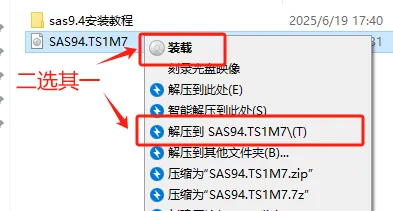 第二步:选中【SAS94.TS1M7】,右击选择装载或解压。
