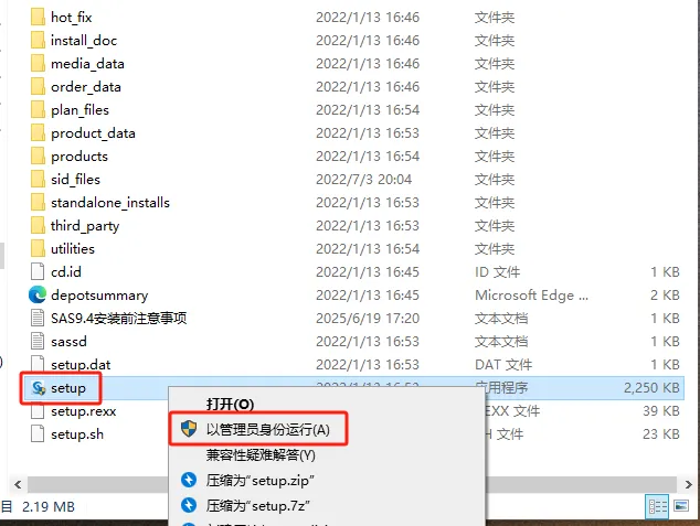 第三步:选中装载或解压出来的文件夹,找到【setup】,右击以管理员身份运行。